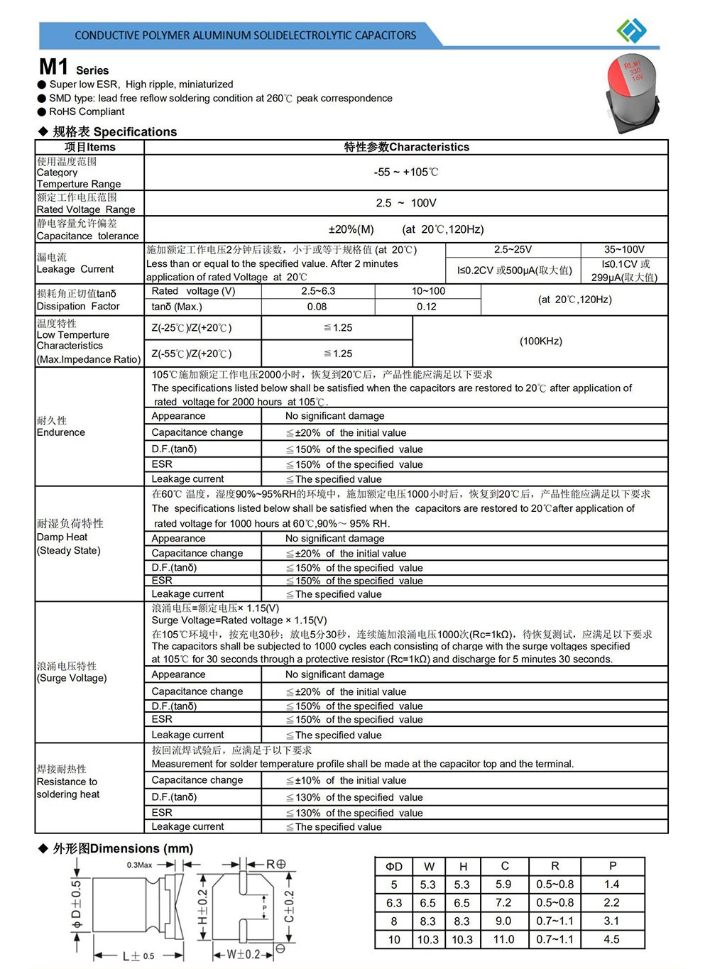 ● Super low ESR, High ripple, miniaturized ● SMD type: lead free reflow soldering condition at 260℃ peak correspondence ● RoHS Compliant
